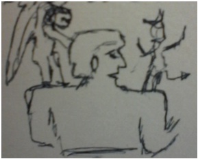 Sobre todo cuando alguien nos hace enojar, es cuando aparece sobre nuestro hombro, esa figurilla diabólica que nos aconseja la manera de desquitar nuestro coraje; haciendo oídos sordos a la figura angelical que trata de detenernos, aconsejándonos que seamos comprensivos y tolerantes; al contrario de lo que nos aconseja la figurilla diabólica, que basándose en nuestro orgullo y dignidad nos exalta a solucionar los problemas de la misma manera como se formaron, o sea con violencia, nublándonos nuestro conocimiento y experiencia de que la violencia no se soluciona con más violencia, porque el mal no se combate con mal, sino con el BIEN.